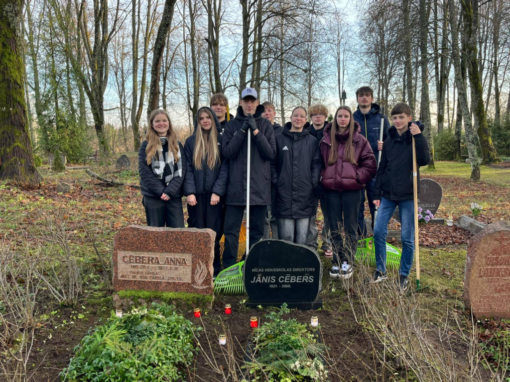 Daļa no 9. a klases kopā ar klases audzinātāju un muzejpedagoģi Sandru Pankoku devās uz Sikšņu Ozolmeža kapsētu, lai sakoptu bijušā direktora Jāņa Cēbra atdusas vietu. Pirms lāpu gājiena 11. novembrī 12. klases skolēni devās uz Verbeļu kapiem Skatrē, lai sakoptu brīvības cīnītāja Augusta Skaras kapa vietu un, iededzot svecītes, godinātu ikviena brīvības cīnītāja piemiņu.