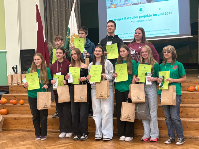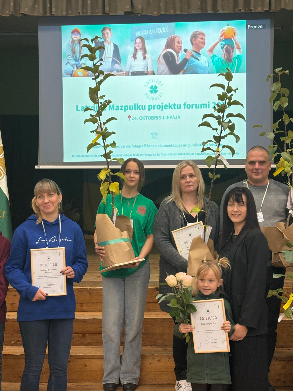 24. oktobrī, Liepājā, norisinājās mazpulku projekta forums “Mazpulki Latvijas lauku attīstībai” Projektu skati apmeklēja kopumā 107 mazpulcēni no 14 dažādiem mazpulkiem. Arī mēs 7 mazpulcēni devāmies parādīt savu veikumu. Paula Radomišķe, Gabriela Vancere (10.kl.) ar biznesa projektu “Ķirbja audzēšana”, Katrīna Ozola (9.b.kl.), Sintija Pumpure (7. a kl.), Paula Sīkle (7.a kl.) ar pētījuma projektiem “Katram savu zirņa dobi”, Karīna Šimkus (10.kl.) ar projektu “Kabači” un Megija Cvībele (9.b kl.) ar projektu “Tējas veselībai”.