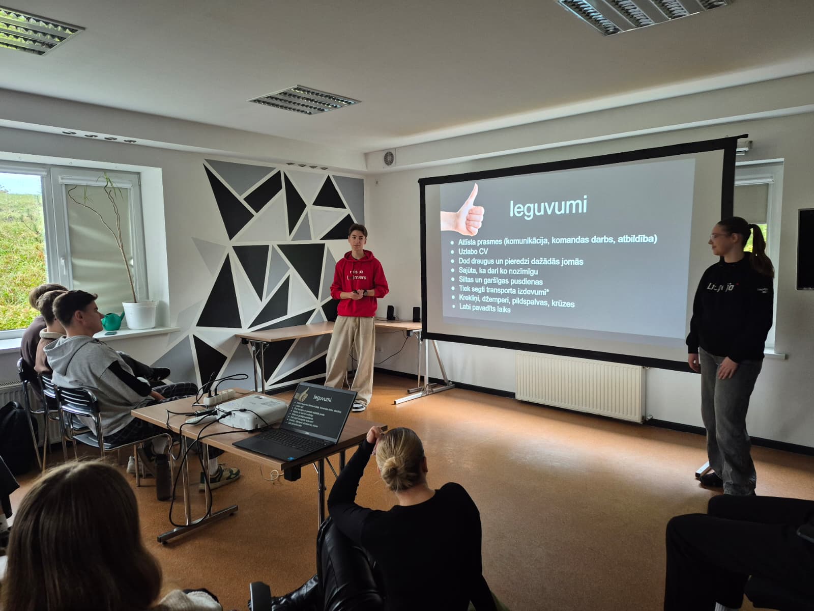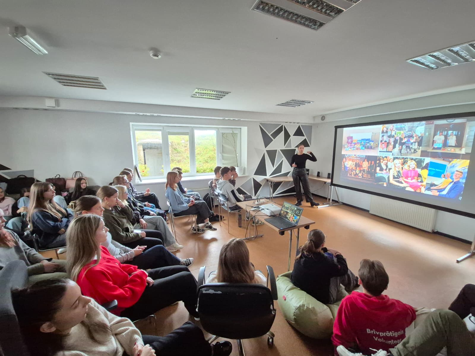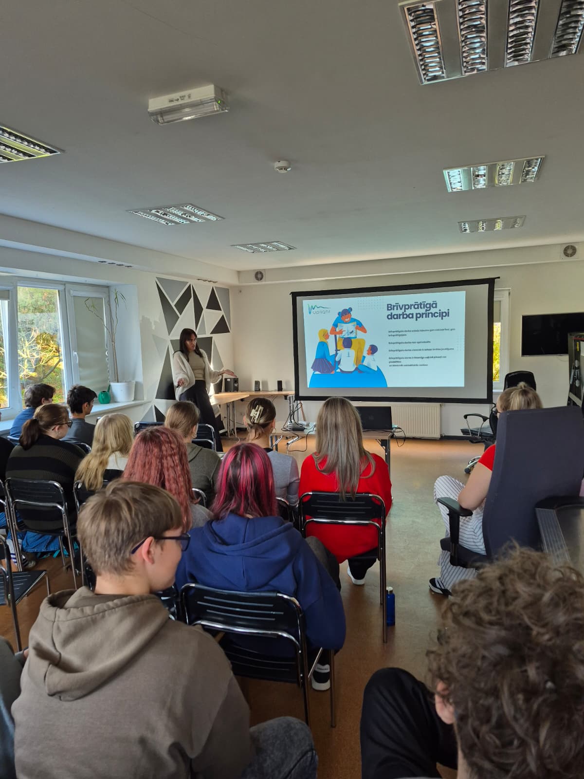 Jauniešiem bija uzdevums sadalīties grupās un formulēja savas idejas par brīvprātīgā darba iespējām, kurās paši vēlētos iesaistīties, pēc tam prezentējot savas idejas.