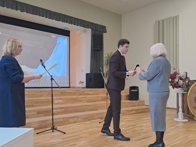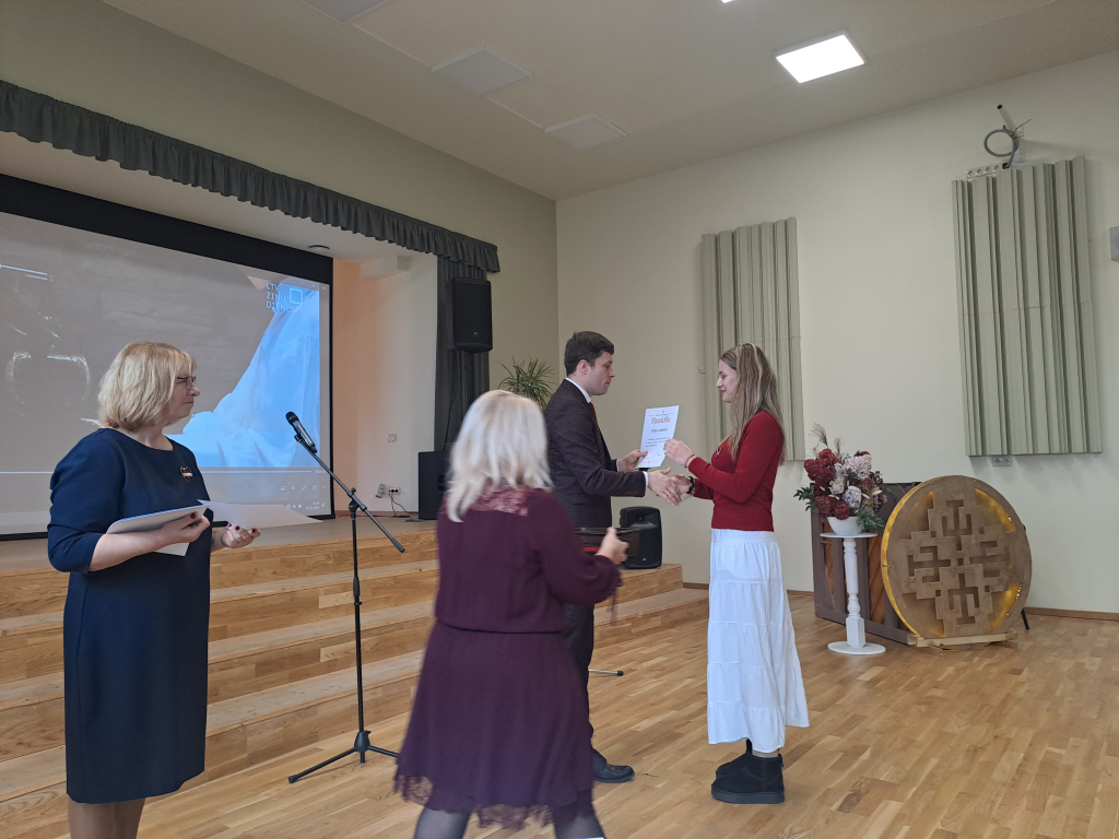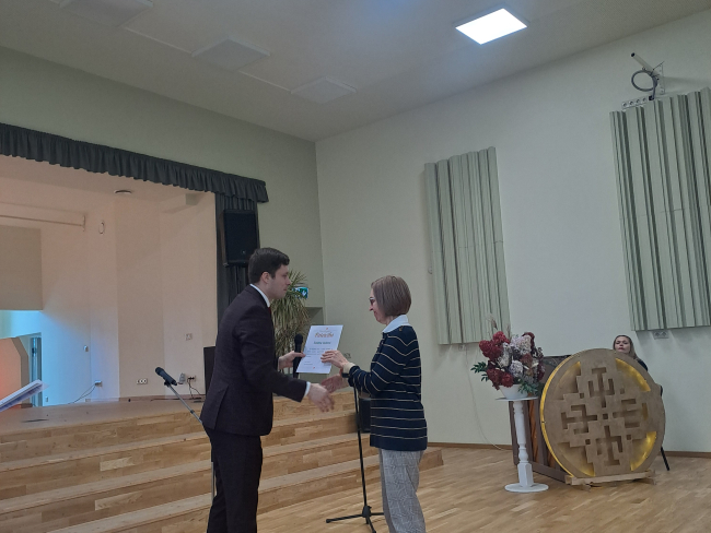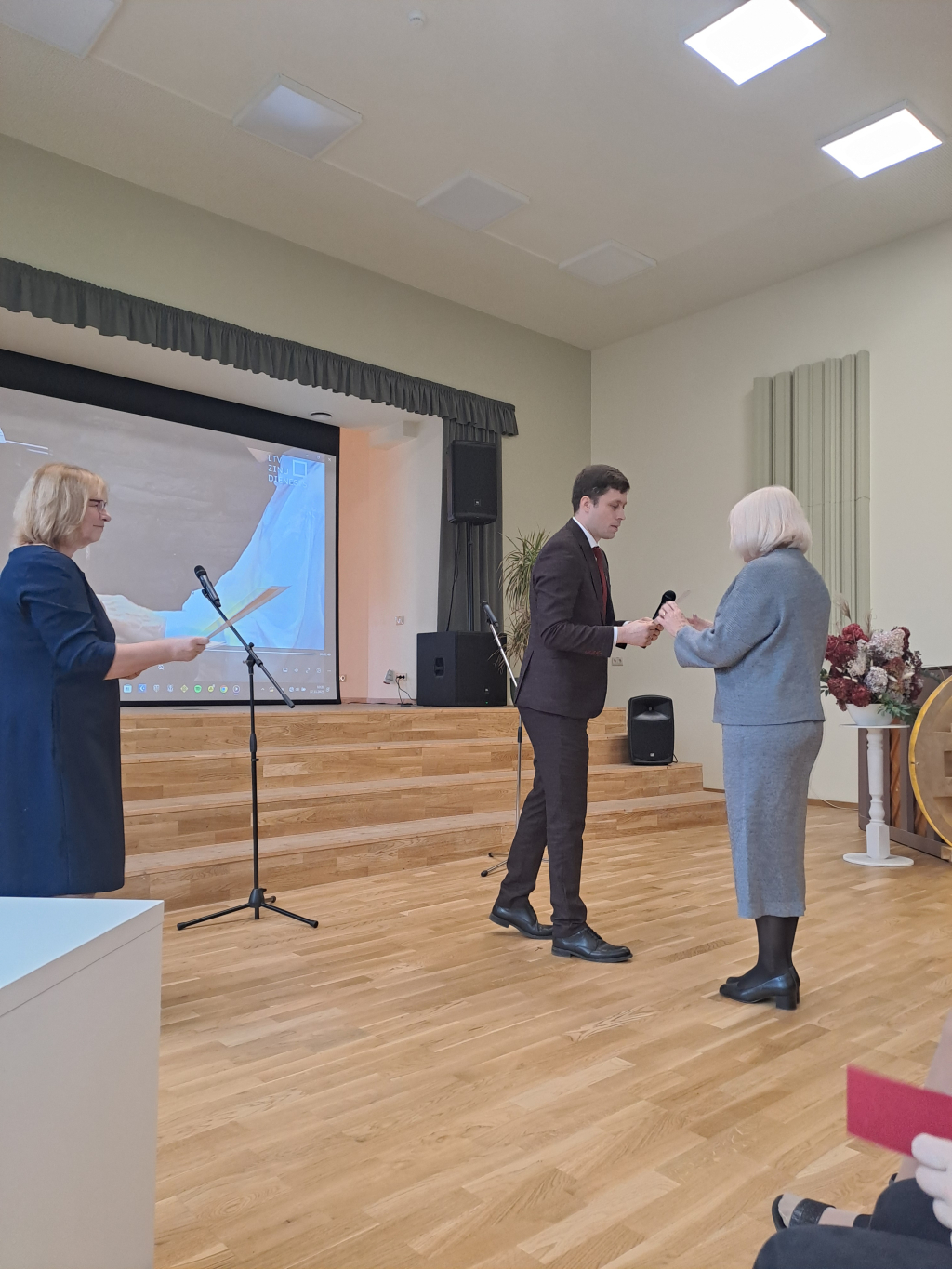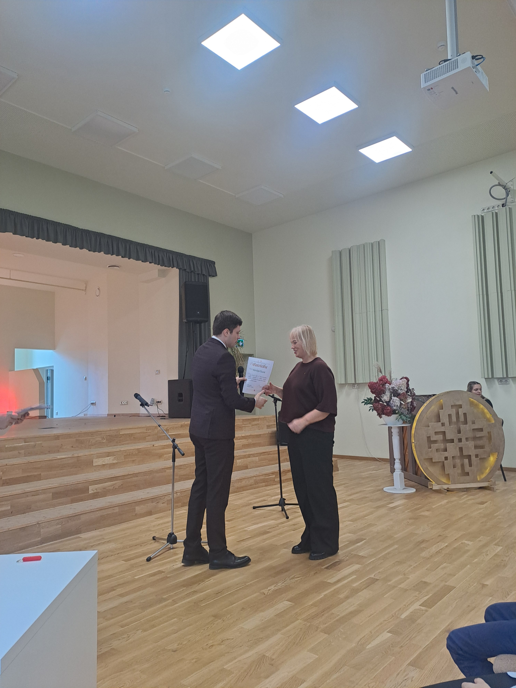 Sandra Vadone - Par ieguldīto darbu un labiem rezultātiem 12. klases skolēnu sagatavošanā centralizētajam eksāmenam latviešu valodā un mācību priekšmeta olimpiādei.