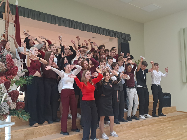 Gaidot Latvijas dzimšanas dienu skolā notika svētku koncerti, kurā katra klase bija sagatavojusi savu dziesmu, ko sarakstījis Raimonds Pauls.