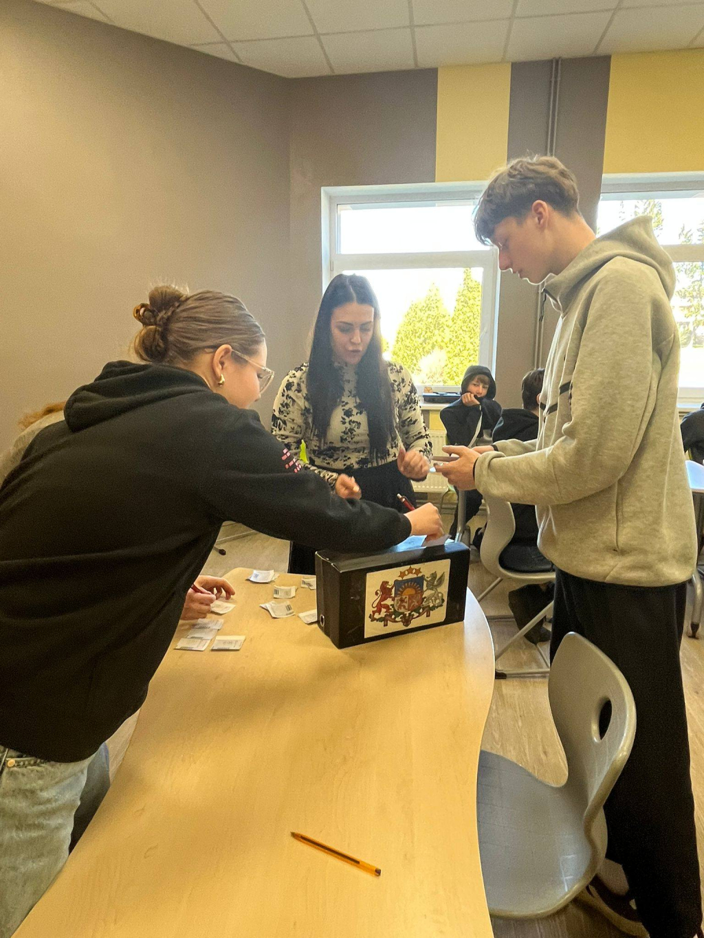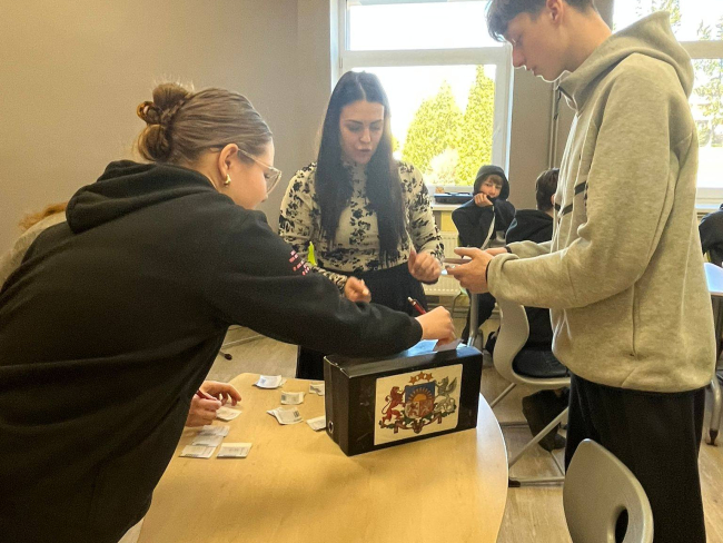Lai attīstītu pilsoniskās līdzdalības prasmi, 8.-12.klašu skolēniem 7. un 8. aprīlī STEM projekta ietvaros notika nodarbības - "Vēlēšanu simulācija: mana balss-mana izvēle" un "Vēlēšanu vara un vēlētāja balss".