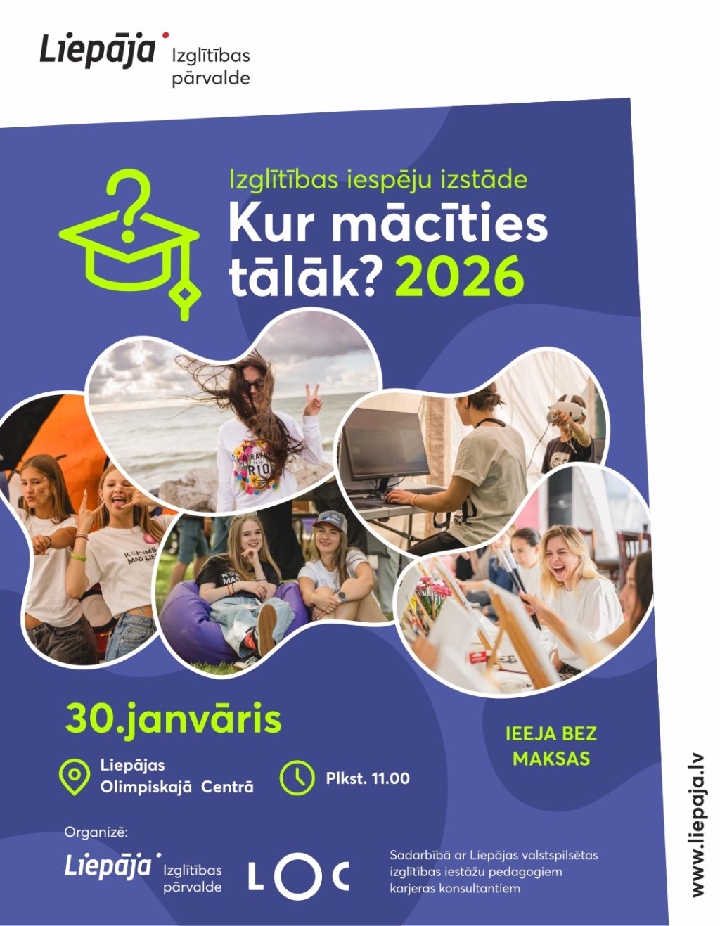 7.11. interesentiem ir iespēja piedalīties karjeras attīstības atbalsta pasākumā "Arhitekta profesija" Liepājā. Pasākuma mērķis ir iepazīt arhitekta profesiju, redzot un noskaidrojot, ko dara LMMDV programmās "Arhitektūras un "Interjera dizains", dzirdot un iepazīstot kā strādā arhitekts SIA UPB Projekti birojā.